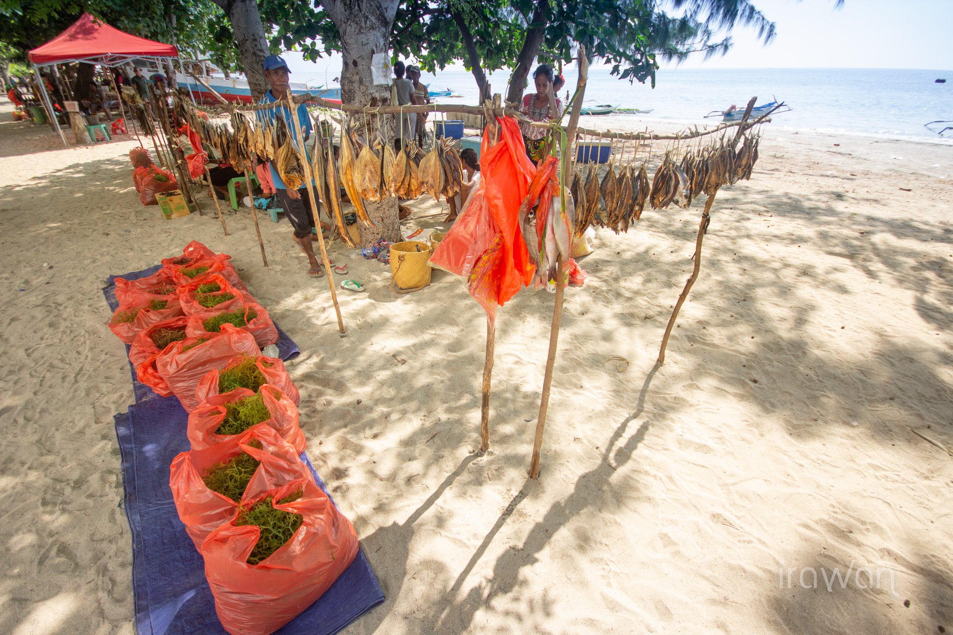 All we did there was, relaxing at our sea view bungalow reading a book or just muckin around with my photo/videos I took during the stay, jump into the water, snorkel, eat, sleep, went for a walk around the village and felt great! The local people were so friendly. All we see are just people smiling at us and say bondia, botarde and bonoite to greet us. Most of the locals are fishermen/women and seaweed farmers. I quite enjoy walking along the coast looking at them spear fishing or spread the net on a tiny boat with all of the family members on board. You can see their catches on Saturday market where big boat from Dili visit, The Berlin Nakroma.